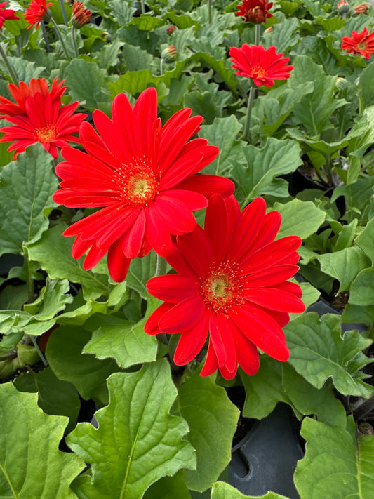 Out of StockGERBERA JAGUAR SCARLET SHADES WITH EYE - 4" POT