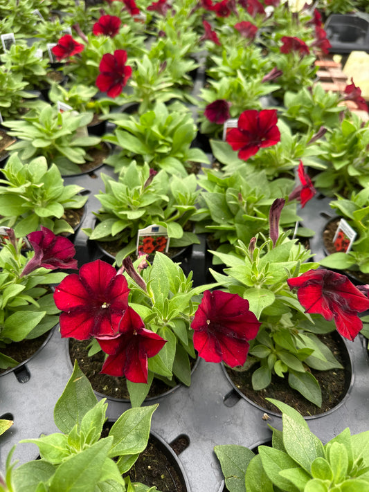 Out of StockPETUNIA DOUBLE PIROUETTE RED - FLAT OF 48 PLANTS