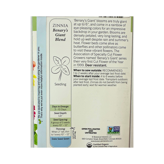 Zinnia Benary's Giant Blend Org