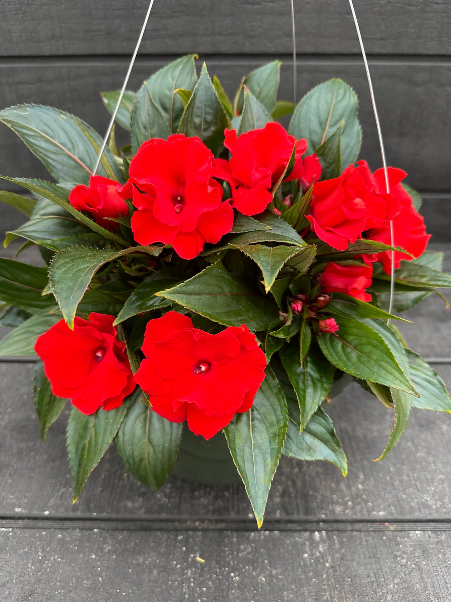 IMPATIENS NEW GUINEA ROLLER COASTER RED RACER - 10" HANGING BASKET