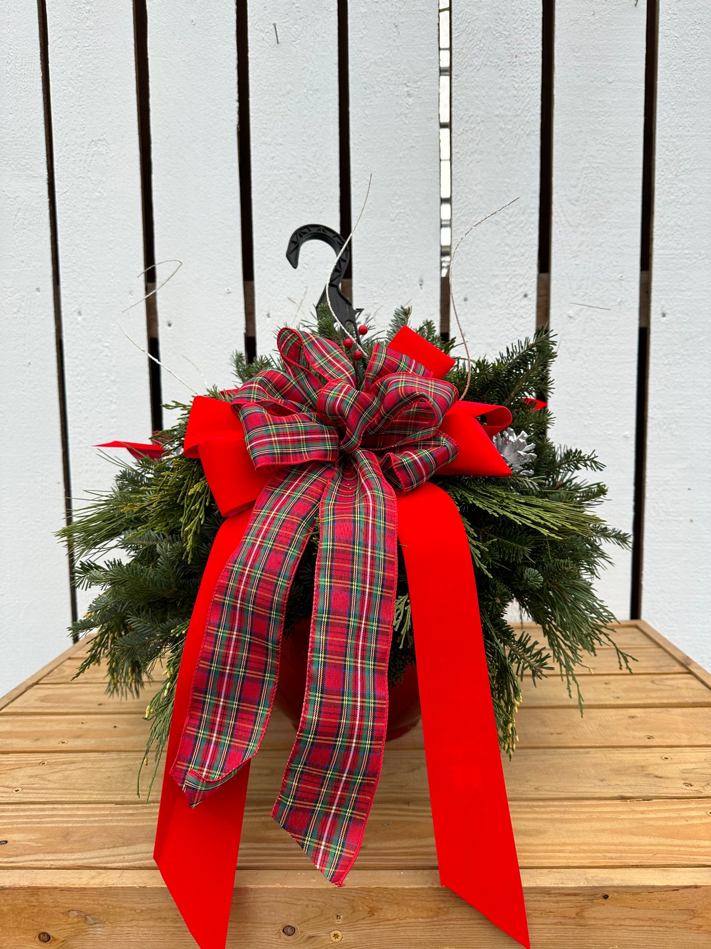 12'' Decorated Christmas Plaid Red Hanging Basket (Xmas)